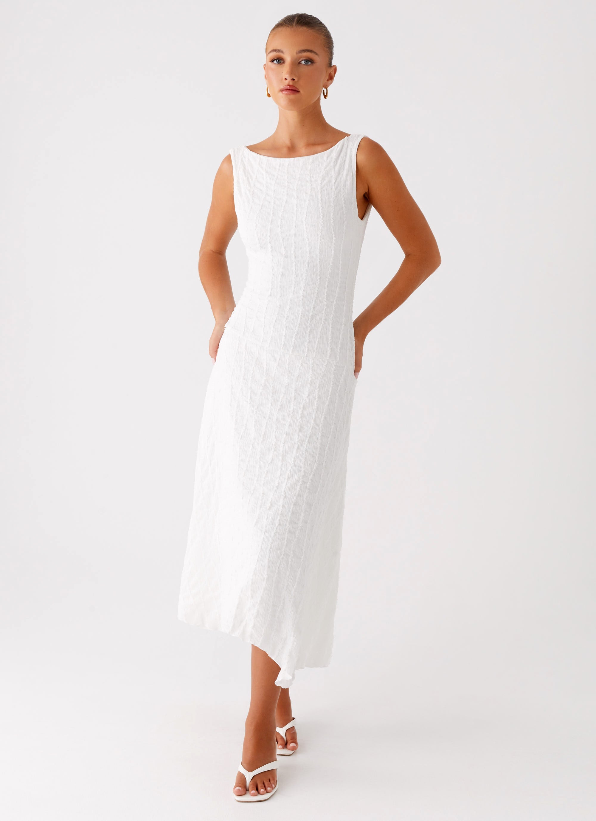 The Sharni Midi Dress blends modern sophistication with comfort. featuring a flattering drop waist and midi length. Its wide neckline and textured fabric give it a unique. relaxed feel. while being fully lined for a smooth and comfortable fit.